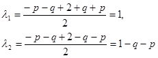 таке, що 1. 2. Матриця 3. Всі елементи цих рядків додатні. Доведення теореми для 2х2 матриць. Запишемо стохастичну матрицю у вигляді Запишемо її характеристичне рівняння: