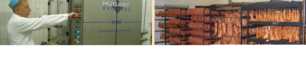 - Докторская - Докторская экстра - Дикий кабан - Телячья - Останкинская 5. Ветчина -Для завтрака -Московская -Элитная 6. Колбаса сырокопченая Для производства сырокопченой колбас выделен специальный участок. Они не подвергаются жесткой термической обработке, максимальная температура в камерах производства не превышает 26 градусов. В камере созревания, где хранится сырье для приготовления колбас, строго фиксированная температура, посол сырья идет под контролем технологов. Куттера имеют программное управление- программа задает время куттерования, температуру. После набивки в оболочку колбасная продукция навешивается направляется на термическую обработку. В термическом отделении идет модернизация-старые венгерские камеры меняют на новые австрийские. Камера сама выполняет технологический процесс варки того или иного ассортимента, сушки, копчения. -Балтийская -Финская -Московская - Кремлевская 7. Тушенка ООО «Великоновгородский мясной двор» изготавливает тушенку на заказ для различных городов небольшими партиями, так например для сети магазинов «Лента» как говядину так и свинину ГОВЯДИНА ТУШЕНАЯ В/С ПРЕМИУМ