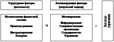 Эффективность менеджмента зависит от активности субъекта управления. Активность складывается из двух типов факторов — структурных и активирующих. Структурные факторы управления требуют рационального подхода, логики, объективности и систематизации. Они характеризуют область технических навыков. Активирующие факторы характеризуют процесс управления людьми, умение налаживать межличностные отношения. Владение этими факторами требует творческого подхода, знаний в области человеческого поведения, интуиции (см. рис. 1).