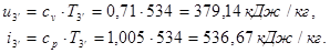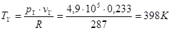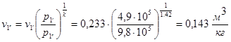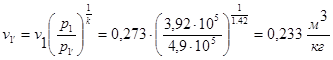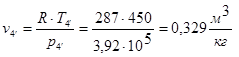 Теплоемкости процессов: 3.2Порядок выполнения расчетов Переведем единицы измерения в систему СИ:1 атм » 98 кПа; p1 = 4 атм = 3,92 × 105 Па; p2 = 16 атм = 15,68 × 105 Па; p3 = 6 атм = 5,88 × 105 Па; Т1 = 373 К. 3.3 Определяем параметры состояния p , v , T , u , i для основных точек цикла: Для точки 1