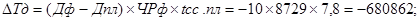 Фонд рабочего времени (Т) зависит от численности рабочих (ЧР), количества отработанных дней одним рабочим в среднем за год (Д) и средней продолжительности рабочего дня (tсм): Т= ЧР х Д х tсм. На анализируемом предприятии фактический фонд рабочего времени меньше планового на 2 147 548 часа. Влияние факторов на его изменение можно установить способом абсолютных разниц: