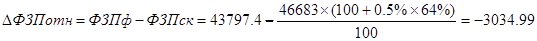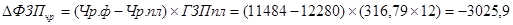 За счет уменьшения фактической среднесписочной численности от плановой на 796 человек имеем годовое отклонение в фонде оплаты труда на 3025,9 тыс.руб. За счет увеличения средней зарплаты, фонд увеличился на 140,3 тыс. руб.
