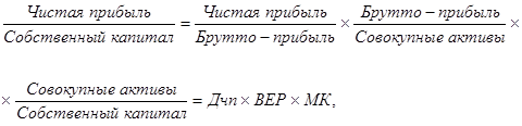 Согласно данным таблицы 3.1 общее изменение рентабельности совокупного капитала составляет: Δ ВЕРобщ = ВЕР1 – ВЕР0 = 14,17 – 9,8 = +4,37%, в том числе за счет изменения: - структуры прибыли Δ ВЕРw = ΔWÍКоб0 ÍR об0 ÍУдок0 = (0,87 – 0,55) Í 3,91 Í 4,6 Í 0,9986 = +5,75%; - коэффициента оборачиваемости операционного капитала Δ ВЕРкоб = W1 ÍΔ Коб ÍR об0 ÍУдок0 = 0,87 Í (2,66 – 3,91) Í 4,6 Í 0,9986 = -4,99%; - рентабельности оборота Δ ВЕРRоб = W1 ÍКоб1 Í Δ R об ÍУдок0 = 0,87 Í 2,66 Í (6,08 – 4,6) Í 0,9986 = +3.42%; - удельного веса операционного капитала в общей сумме капитала Δ ВЕРудок = W1 ÍКоб1 ÍR об1 ÍΔ Удок = 0,87 Í 2,66Í6,08Í(0,9993–0,9986) = 0,01%. Данные этого расчета показывают, что доходность капитала за отчетный год увеличилась в связи с повышением рентабельности продаж, а также изменениям структуры прибыли. Увеличение прибыли от инвестиционной и финансовой деятельности способствовали росту величины Wп, а следовательно, и доходности совокупного капитала. Когда как доля операционного капитала практически не изменилась, а понижение коэффициента оборачиваемости снизило доходность совокупного капитала почти на 5%. Рентабельность собственного капитала замыкает всю пирамиду показателей эффективности функционирования предприятия, вся деятельность которого должна быть направлена на увеличение суммы собственного капитала и повышение уровня его доходности. Рентабельность собственного капитала (ROE) и рентабельность совокупного капитала (ВЕР) связаны между собой следующим образом: