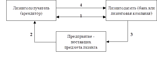 Активными участниками лизинговых отношений выступают коммерческие банки. В нашей стране пока не создано достаточных условий для развития долгосрочной аренды машин и оборудования и тем более участия банков в арендных отношениях, т.е. в осуществлении ими лизинговых операций. Главная причина – нестабильность экономической ситуации, высокие риски лизинговых операций для партнёров. За рубежом распространено кредитование коммерческими банками специализированных лизинговых компаний, которые, подписывая договор, обязуются брать кредиты только в данном банке, а кредитор берёт на себя обязательство покрывать все потребности этих компаний в заёмных средствах. Благодаря ссудным операциям по кредитованию лизинговых компаний банки получают возможность влиять на направления лизинга и посредством этого укреплять связи с клиентами. Основным видом лизинговых операций, которые осуществляют коммерческие банки, является чистый финансовый лизинг, т.е. лизинг с полной окупаемостью, при котором все расходы по обслуживанию арендованного имущества возлагаются на арендатора. Роль банка-арендодателя в этом случае сводится к чисто финансовой стороне дела. Будущий арендатор сам находит поставщика оборудования, договаривается с ним о технических параметрах, цене, сроках и т.д. единственное обязательство банка-арендодателя – выплатить поставщику стоимость оборудования, заказанного арендатором, и сдать его ему в аренду. Банк-арендодатель не несёт ответственности за соблюдение условий поставки в случае возникновения спора между поставщиком и арендатором. На рис. 2 представлены взаимоотношения между участниками лизинговой сделки.