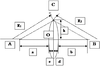 Рассматриваем параксиальные (приосевые) лучи, то есть лучи, образующие с оптической осью малые углы. Только при использовании параксиальных лучей получается стигматическое изображение , когда все лучи параксиального пучка, исходящего из точки A, пересекают оптическую ось в одной и той же точке B. Поскольку h <<(a + e ) и h <<(b + d ). Получаем: