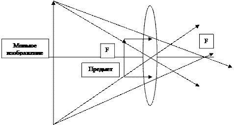 3) Мнимое изображение в рассеивающей линзе