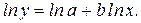 Рисунок 1 График степенной зависимости Покажем, как нахождение приближающей функции в виде геометрической регрессии может быть сведено к нахождению параметров линейной функции. Предполагая, что в исходной таблице 1 значения аргумента и функции положительны, прологарифмируем равенство (3) при условии