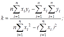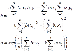 Таким образом приближающая показательная функция нехитрыми преобразованиями сведена к линейной, следовательно, для определения коэффициентов