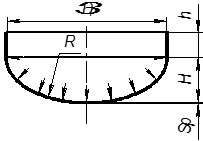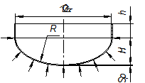Рисунок 4 - Внешнее давление РН , действующие на днище корпуса. 2.3.2 Толщина стенки днища, нагруженного наружным давлением, рассчитывается по формуле