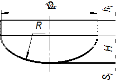 Рисунок Д1 - Схема днища аппарата Таблица Д1 - Длина (высота) отбортованной части днища h1 , мм, в скобках указана масса днища в килограммах mдн , кг
