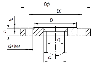 Рисунок Ж2 - Схема штуцера Приложение Ж (Продолжение) Таблица Ж2 - Фланцы штуцеров, трубопроводов, арматуры. Стальные, цельные, приварные по ГОСТ 12820-80РУ - условное давление, dУ - условный диаметр трубы, dН - наружный диаметр трубы, dб - диаметр болтов, Z - число болтов.