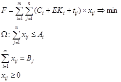 ![]() j – вариант (индекс) проекта капитальных вложений; s – общее число проектов; kj – объем капитальных вложений по j варианту; M – суммарный годовой объем капитальных вложений; Rj – ожидаемый доход от реализации j варианта капитальных вложений; N – общее число вариантов капитальных вложений. Данная модель позволяет исходя из стоимости исходных компонентов и содержания необходимых элементов в исходных компонентах получить дешевый выходной продукт. Данная модель применяется на металлургических, химических, нефтеперерабатывающих заводах, крупных АПК.
