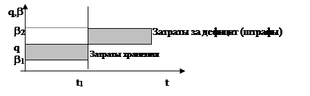 2) 3) h – затраты на хранение единицы продукции в единицу времени; 4) k – затраты на размещение (оформление) ресурсов, сырья. Так как b - величина случайная, то ( q - b ) и (b - q) будут величины случайные, поэтому оптимизация и функция цели будут находится как для случайных величин. Функция цели будет представлять собой математическое ожидание от суммы слагаемых. Одно из них представляет собой математическое ожидание затрат на размещение заказа; другое математическое ожидание затрат на хранение ресурсов.