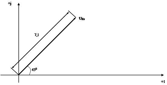 Построение векторной диаграммы цепи производится на основе числовых данных, представленных в таблице. Для каждого тока (напряжения) в таблице имеются значения модуля и аргумента. Например, модуль напряжения на сопротивлении Re