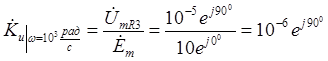 Рассмотрим еще одну точку частотной характеристики, например, соответствующую частоте ω = 103 рад/с. Для этого повторим расчеты (3.1) – (3.33) при новом значении частоты.