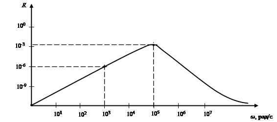 Таким образом, коэффициент передачи по аналогии с (3.41) для частоты ω = 103 рад/с равен