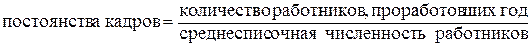 Как видно по данным таблицы, численность ППП в отчетном году по сравнению с прошлым увеличилась и составила 104,7 %, что в абсолютном выражении составило 2 585 человек. Из таблицы видно, что удельный вес рабочих в общей численности работников предприятия увеличился почти на 10 % в 2010 г. по сравнению с 2009г. Увеличилась и доля руководителей и специалистов. К штату руководителей прибавились 9 человек. На 2011 год в результате снижения объемов производства планируется снижение среднесписочной численности работающих на 4,9%. 2.3 Анализ показателей движения и постоянства кадров. Движение рабочей силы на предприятии, связанное с приемом и увольнением работников, является важным объектом анализа, поскольку уровень стабильности кадров – один из факторов, оказывающих влияние на производительность труда и эффективность производства. Анализ движения рабочих кадров выполняется путем расчета следующих коэффициентов: 1) Коэффициент общего оборота, рассчитываемый как отношение числа принятых и уволенных работников за анализируемый период к среднесписочной численности работников. 2) Коэффициент оборота рабочей силы по приему – отношение числа принятых к среднесписочной численности работников. 3) Коэффициент оборота рабочей силы по увольнению – отношение числа уволенных к среднесписочной численности работников. 4) Коэффициент необходимого оборота, равный отношению числа уволенных по неизбежным и независящим от предприятия причинам к среднесписочной численности работников. 5) Коэффициент текучести – отношение численности уволившихся по собственному желанию, за прогулы и другие нарушения трудовой дисциплины к среднесписочной численности работников. Результаты анализа сведены в таблицу 2. Таблица 2 - Движение рабочей силы