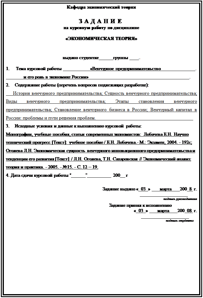 Курсовая работа: Венчурное предпринимательство и его роль в экономике России
