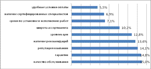 Рис. 2.3.3. Состав респондентов Большая часть респондентов является представителями предприятий нефтехимической отрасли (20%), автомобилестроения (18%), машиностроения (16%) – данные отрасли являются основными потребителями IT услуг. Представители компаний банковского сектора составляют 15% опрошенных, строительство (13%), сельское хозяйство (6%), пищевая (5%) и стекольная промышленность (5%), пенсионное обеспечение (2%). В результате анализа был сделан вывод, что услуги IT компаний слабо дифференцированы, уровень качества IT услуг высок, а цены стабильно снижаются. Это свидетельствует о преобладание на рынке не ценовых методов конкуренции. 3. Пути повышения конкурентоспособности ЗАО «Форт Диалог» на IT рынке республики Татарстан 3.1. Мероприятия по повышению конкурентоспособности услуг ЗАО «Форт Диалог»Проведенный анализ дает возможность выявить пути повышения конкурентоспособности услуг, реализуемых ЗАО «Форт Диалог». Выявленные возможности организации, угрозы со стороны внешней среды, сильные и слабые стороны позволили комплексно оценить ситуацию вокруг компании и внутри неё самой.Анализ определил атрибуты, которые являются первостепенными при выборе поставщика IT услуг: качество обслуживания, гарантии, репутация компании, наличие рекомендация, уровень цен, широта ассортимента, сроки по установке и исполнению работ и наличие сертифицированных специалистов. Таким образом, компания, наиболее полно реализующаяданные характеристики, является более привлекательной в глазах потребителей. В свою очередь исследование наглядно показало уровень исполнения данных характеристик исследуемыхIT компаниях.Предлагаемые в данный момент компанией «Форт Диалог» услуги не отвечают требованиям потребителям по следующим критериям: репутация компании, наличие рекомендаций, высокий уровень цен, длительные сроки по установке и исполнению работ, недостаток сертифицированных специалистов.Как уже было отмечено во второй главе, ЗАО «Форт Диалог» лидирует по самым важным атрибутам «качество обслуживания» и «гарантии», уступая по третьему по важности атрибуту – «репутация компании». В свою очередьинформация, полученная в ходе SWOT анализа, свидетельствует о том, что существует угроза появления новых конкурентов в частности представительств федеральных компаний и усиление рекламной деятельности конкурентов.Следующим атрибутом, по которому «Форт Диалог» проигрывает основным конкурентам, является наличие рекомендаций. Данный атрибут не играет первостепенную роль, однако учитывается потребителями. Поэтому следует рассмотреть возможность использования существующих клиентов в роли маркетинговых посредников для привлечения новых клиентов, разработать маркетинговые мероприятия, направленные на формирование имиджа компании в кругах потенциальных клиентов. К мероприятиям направленных на создание положительного имиджа компании можно отнести специализированные и отраслевые выставки, семинары – мероприятия, проводимые с целью презентации продуктов и решений компании в определенной сфере для потенциальных потребителей, PR публикации. К мероприятиям направленным на повышение лояльности можно отнести бизнес форум – трех дневное выездное мероприятия включающее в себя семинары о продуктах и решения компании и неформальную часть, так же в бю