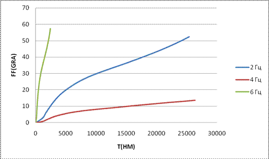 Результаты расчетов выводятся на экран дисплея (или по желанию пользователя распечатываются на бумаге) в виде таблицы, содержащей 15 точек характеристики. Выходные данные представлены в таблице 2. Исходные данные ORV . Таблица 1.1. ┌──┬──────┬────────────────────────────────────────┬───────┬──────────┐ │N │ОБОЗН,│ НАИМЕНОВАНИЕ ПАРАМЕТРА │ЕД,ИЗМ,│ ВЕЛИЧИНА │├──┼──────┼────────────────────────────────────────┼───────┼──────────┤ │ 1│ PS │ СРЕДНЯЯ СТАТИЧЕЧЕСКАЯ НАГРУЗКА НА ОПОРУ│ Н │ 22000, │ │ 2│ FZ │ ЧАСТОТА ВЕРТИКАЛЬНЫХ КОЛЕБАНИЙ │ Гц │ 2, │ │ 3│ CP │ КОЭФФИЦИЕНТ ПРЕДВАРИТЕЛЬНОГО ПОДЖАТИЯ │ - │ 0,3 │ │ 4│ A1 │ КОЭФФИЦИЕНТ МИНИМАЛЬНОЙ СТАТИЧЕСКОЙ НА-│ │ │ │ │ │ ГРУЗКИ │ - │ 0,5 │ │ 5│ A2 │ КОЭФФИЦИЕНТ МАКСИМАЛЬНОЙ СТАТИЧЕСКОЙ │ │ │ │ │ │ НАГРУЗКИ │ - │ 2, │ │ 6│ DK │ КОЭФФИЦИЕНТ ДИНАМИЧНОСТИ │ - │ 2,5 │ └──┴──────┴────────────────────────────────────────┴───────┴──────────┘ Выходные данные ORV PS= 22000,0 Н; FZ= 2,0 ГЦ; CP= ,30 A1= ,50 A2=2,00 DK= 2,50 Таблица 2.1