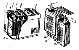 представляет собой коробку, которую можно снять и поставить. При этом необходимо учитывать посадочные размеры установочного гнезда. Она предназначена для хранения электрической энергии постоянного тока обеспечения ею потребителей при неработающем двигателе и как аварийная, при выходе из строя генератора. Она разделена на банки, внутри которых размещены специальные пластины, взаимодействие которых с электролитом, залитым в банку, обеспечивает появление и хранение электрического тока. Электролит