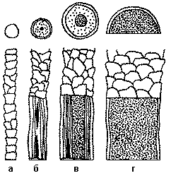 В зависимости от соотношения отдельных слоев волокна шерсти подразделяются на 4 типа: