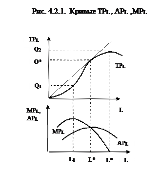 Как видно из рис. 4.2.1. между совокупным, средним и предельным продуктами существует тесная связь. Форма кривой совокупного продукта при изменяющихся затратах труда и постоянных затратах других факторов отражает закон убывания предельной производительности. Предельный продукт отражает наклон совокупного продукта. Когда наклон TPL увеличивается до Q1 , такжеувеличивается MPL . Когда MPL = 0 TPL достигает своего максимума. Если дальше увеличивать количество труда TPL будет сокращаться. MPL достигает своего максимума раньше, чем APL . Когда MPL > APL , APL увеличивается. А когда MPL < APL , APL сокращается. Когда L = APL , APL достигает своего максимума. Изменения MPL влияют на предельную норму технологического замещения трудом капитала. С учетом предельного продукта она может быть выражена следующим образом: MRTS LK = - ∆ K /∆ L = MPL / MP к. 3- вопрос . В долгосрочном периоде менеджеры фирмы могут изменять все факторы производства и производственную мощность. На соотношение между затратами факторов производства и объемом выпуска не действуют законы убывающей предельной производительности. Изменение масштаба производства создает следующие эффекты: 1. Увеличивающийся эффект роста масштаба производства имеет место тогда, когда объем выпуска увеличивается в пропорции, которая превышает пропорцию увеличения затрат ресурсов. Данный эффект является результатом повышения производительности труда и капитала вследствие широкого использования преимущества крупного предприятия, специализации и разделения труда. 2. Постоянный эффект масштаба производства существует, когда объем выпуска продукции увеличивается в той же пропорции, что и затраты ресурсов. 3. Уменьшающийся эффект роста масштабов производства имеет место, когда объем выпускаемой продукции увеличивается в меньшей степени, чем затраты ресурсов . Данный эффект связан с ростом дополнительных затрат на управление, сложностью системы управления и координации производства. 4- вопрос . Следует различать экономические (альтернативные) и бухгалтерские издержки, а также бухгалтерскую и экономическую прибыль. Эти категории знакомы студентам из курса Экономическая теория. Экономические издержки = бухгалтерские издержки + альтернативные издержки ( в том числе нормальная прибыль). Функция издержек связана с производственной функцией. Минимизация затрат для производства любого данного объема продукции зависит от производства максимально возможного объема продукции при данной комбинации факторов. Совокупные издержки ТС зависит от количества и цены факторов производства: ТС= PL L=PkK. Линия, отражающая сочетания затрат труда и капитала, при которых издержки производства одинаковы называется изокоста. Наклон изокосты определяется как отношения цен затрачиваемых факторов со знаком минус - PL /Pk . Какую комбинацию факторов производства выберет фирма, чтобы минимизировать затраты для выпуска данного объема продукции? Условием для определения минимальных затрат производства данного объема продукции является равенство наклона изокванты наклону изокосты: MRTSLK = PL / PK . Принцип наименьших затратпредполагает, чтобы одновременно используемые ресурсы имели одинаковую величину предельного продукта на тенге затрат: MPL / PL = MPk / Pk Издержки производства в краткосрочном периоде делятся на постоянные и переменные. Постоянные и