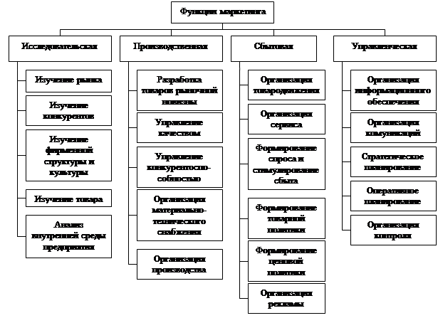 Рис. 8 Функции маркетинга На данной схеме представлены четыре глобальных функции маркетинга. Четвертой является функция управления и контроля (собственно, управления маркетингом). Цель рис. 8. заключается в пояснении самой природы маркетинга, его содержания и не более. Но поскольку и сам маркетинг нуждается в управлении, что не требует каких-либо особых доказательств.[6] [ 8 ] Отечественные предприятия имели и еще имеют четко выраженную производственную ориентацию. Очевидно, что в начале реформы в среде их традиционных покупателей произошли некоторые изменения. Предприятия же об этих изменениях ничего не знали и, что характерно для многих предприятий начала реформ, не пытались даже узнать. Создавали товары, услуги, а потом удивлялись, почему никто не покупает? В этом и заключаются основные признаки производственной ориентации. Чтобы подобных ситуаций на отечественных предприятиях не было, им можно предложить изменить свою ориентацию деятельности с производственной на маркетинговую. Для этого следует: · создать отдел (службу) маркетинга с четко определенной структурой функциональных задач; · переосмыслить и изменить философию производственного взаимодействия руководителей разного уровня управления предприятием в соответствии с требованиями маркетинговой ориентации; · провести тщательное исследование рынка на предмет его границ, нужд, потребностей, запросов, потребительских ценностей, качества; · выбрать концепцию управления производством и сбытом данного товара. Результаты исследования рынка могут подсказать ее. Возможно, вполне подойдет концепция совершенствования производства, тогда усилия руководителей, специалистов и рабочих следует направить на совершенствование технологий, снижение издержек производства и цен. Если дело не только в ценах (или вовсе не в ценах), то, очевидно, может помочь концепция совершенствования товара или концепция интегрированного маркетинга. Последняя, естественно, надежнее и лучше, но потребует и больших затрат на осуществление. Однако и результаты могут оказаться более ощутимыми, чем при концепции совершенствования товара. Что касается концепции социально-этичного маркетинга, то она подойдет не каждому предприятию. Таким образом, проблемы многих отечественных предприятий (естественно, не всех) кроются в отсутствии эффективного и результативного маркетинга в их деятельности. Перевод системы управления предприятий с производственной ориентации на маркетинговую, как того требует рыночная экономика, безусловно, решит эти проблемы полностью, хотя и не сразу. Положительные примеры такой переориентации весьма убедительно демонстрируют некоторые российские предприятия. Многие думают, что маркетинг в основном связан с рекламой и сбытом. Однако это далеко не так. И руководству российских предприятий, создавая у себя службы маркетинга, необходимо это иметь в виду. Закончить раскрытие понятийных и концептуальных аспектов управления маркетингом можно следующими выводами: · Маркетинг - это «вид человеческой деятельности, направленный на удовлетворение нужд и потребностей людей посредством обмена», это «предвидение, управление и удовлетворение спроса на товары, услуги, организации, людей, территории и идеи посредством обмена», это производство того, что люди, безусловно, купят,