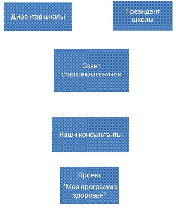 МОУ «Средняя общеобразовательная школа № 9» Номинация : «Моя программа здоровья» Проект создания программы «Наше здоровье в наших руках!» Авторы проекта: члены Совета старшеклассников МОУ «Средняя общеобразовательная школа № 9» Руководитель проекта: педагог-организатор Кузнецова Вера Анатольевна 2011 г. Информационная карта проекта Название проекта: «Наше здоровье в наших руках!» Цель проекта: Создание программы, направленной на формирование у учащихся стремления к укреплению своего здоровья. Авторы проекта: Члены совета старшеклассников. Сроки реализации проекта: Октябрь-май 2009-2011 г. Руководители проекта: ЗД по ВР Фомина Ирина Алексеевна, руководитель МО физической культуры Лукашева Татьяна Алексеевна, педагог-организатор Кузнецова Вера Анатольевна, преподаватель-организатор ОБЖ Шигабиева Диляра Мунировна. Заказчики проекта: Директор школы: Кострюкова Ольга Леонидовна. Лидер волонтерского движения: Козурман Мария. Адрес школы: город Оренбург, улица Сергея Лазо – 9, индекс 460044 Телефон: (3532) 36-68-29, (3532) 36-68-66 «Тело - храм, в котором живет твоя душа. И если ты уважаешь себя, то содержи этот храм в надлежащем порядке!» Девиз проекта: «Пусть все мечты сбываются!» Задачи проекта: · Сбор и оформление информации по рассматриваемой проблеме; · Проведение диагностических анкет, опросов по представлениям школьников о проблеме здоровья; · Наладить сотрудничество с учреждениями и организациями, которые могут оказать нам помощь в создании программы. Ожидаемые результаты: 1. Создать программу. 2. Снизить заболеваемость школьников. 3. Снизить количество психоэмоциональных расстройств. 4. Улучшить успеваемость. 5. Повысить уровень знаний по вопросам здоровья и его сохранения. 6. Увеличить число школьников, занимающихся в спортивных секциях и кружках. 7. Повысить уровень физической подготовки школьников. Проект создания программы «Наше здоровье в наших руках!» Анализируя ряд актуальных проблем современного общества, мы искали ту, которую возможно решить нам – молодому поколению Оренбуржцев. Среди множества интересных и увлекательных идей наиболее близкой для нас стала проблема формирования у молодежи навыков здорового образа жизни, ведь главное для человека - быть здоровым. Нам показалось, что в настоящее время мы способны наиболее качественно и эффективно решать вопросы, связанные именно с этим направлением развития общества. Мы понимаем, что необходимо сделать очень много шагов на пути к формированию у молодежи навыков здорового образа жизни, но всегда важно сделать первый шаг. Поэтому главной целью нашего проекта стало создание программы на формирование у обучающихся стремления к укреплению своего здоровья, воспитания у них привычки к систематическим занятиям физическими упражнениями, приобщение к знаниям в области гигиены и здорового образа жизни. Ведь без теории невозможна практика. Для нас важно, чтобы созданная программа способствовала: · Созданию условий для сохранения и укрепления здоровья обучающихся. · Воспитанию негативного отношения к вредным привычкам. · Активной и широкой пропаганде здорового образа жизни. · Увеличению двигательной нагрузки учащихся на занятиях и вне занятий, направленных на укрепление здоровья школьников. · Формированию у учащихся представления об ответственности за собственное здоровье. С
