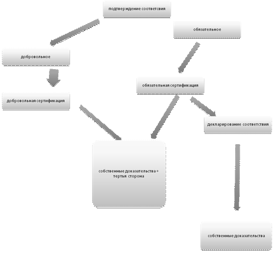 Обязательное подтверждение соответствия осуществляется в форме принятия декларации о соответствии (декларирование соответствия) или в форме обязательной сертификации . Оно проводится только в случаях, установленных соответствующим техническим регламентом, на соответствие требованиям технического регламента. Целью обязательного подтверждения соответствия является создание уверенности в том, что заявленная продукция безопасна для потребления. Таким образом, оно является средством государственного контроля за безопасностью продукции и процессов. Перечень товаров, подлежащих обязательному подтверждению соответствия, устанавливается законодательно. Обязательная сертификация осуществляется органом по сертификации с использованием схем сертификации, устанавливаемых соответствующим техническим регламентом. Декларирование соответствия может осуществляться либо на основании собственных доказательств, либо на основании собственных доказательств и доказательств, полученных с участием органа по сертификации и (или) аккредитованной испытательной лаборатории (центра). Соответствие продукции (и других объектов) установленным требованиям подтверждается выдачей документа - сертификата соответствия . Совокупность правил, процедур и участников сертификации образует систему сертификации . С середины 60-х годов ХХ века на базе национальных систем сертификации разных стран создаются региональные международные системы сертификации закрытого типа (например, в рамках ЕЭС и Европейской зоны свободной торговли). В конце 60-х годов в рамках ИСО, Европейской экономической комиссии ООН (ЕЭК ООН), Генерального соглашения по тарифам и торговле (ГАТТ) развертывается работа по международной сертификации. Комитет ИСО по сертификации (ИСО/СЕРТИКО, который затем стал называться Комитетом по оценке соответствия - ИСО/КАСКО) разработал рекомендации по организационным принципам сертификации продукции, на основе которых должны действовать национальные системы сертификации. Если национальные системы сертификации соответствуют требованиям ИСО, то выданные ими сертификаты признаются другими странами - членами ИСО. В противном случае продукция подвергается дополнительным сертификационным испытаниям за счет поставщика. Кроме того, западные фирмы предпочитают иметь дело с партнерами, которые сертифицируют не только отдельные партии товаров, а и систему качества предприятия. В ряде стран без сертификата доступ товаров на внутренний рынок запрещен в законодательном порядке. В соответствии с правилами ИСО для проведения сертификации в стране с тем, чтобы ее результаты были приняты другими странами, необходимы следующие условия : - наличие НТД (стандартов) на продукцию, устанавливающих величины характеристик, подлежащих сертификации, методы и порядок проведения испытаний и обработки их результатов; - наличие сети независимых как от изготовителей, так и от потребителей испытательных центров, располагающих необходимым испытательным оборудованием, измерительными приборами и условиями для проведения сертификационных испытаний и периодической аттестации; - наличие надзора за деятельностью испытательных центров и предприятий-изготовителей; - высокий уровень организации технологических процессов производства с оснащением нео