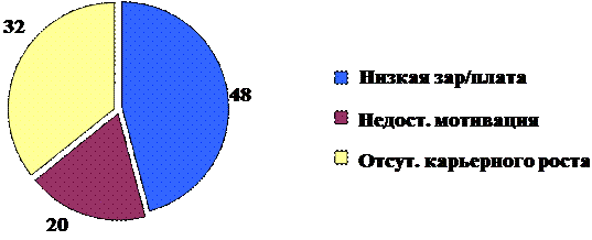 Рисунок 5 - Основные причины ухода персонала из ООО «Диана» Важнейшим условием эффективного труда является подбор работников с точки зрения профессиональной подготовки, личностных качеств, ценностных установок. В систему подбора персонала на данном предприятии входят: - поддержание постоянных связей с определенными учебными заведениями; - использование при приеме на работу системы заявок и рекомендаций; - собеседование при приеме; - исследование семейного положения, оценка рекомендаций и отзывов; - обязательно устанавливается испытательный срок (обычно 3 месяца) с подведением итогов его прохождения. Маркетинг персонала на предприятии ориентирован на рациональное использование внутрифирменных трудовых ресурсов, эффективное распределение людей по рабочим местам, обеспечение наиболее оптимальных условий для раскрытия природных дарований работников. Расстановку и профессиональную адаптацию работника в коллективе обычно организовывают так, чтобы работник был назначен на должность с объективно рассмотренными и со строго очерченными функциональными обязанностями, с ясными требованиями к профессиональным и личностным качествам. Доводится цель выполняемой работы в структурном подразделении и важность выполняемой работником работы для всего учреждения в целом. Какие перспективы откроются перед работником в материальных и социальных благах и карьерном росте при добросовестном выполнении функциональных обязанностей и применении разумной инициативы. Руководящий персонал формируется по принципу команды, предполагающий совместимость, взаимную дополняемость и нацеленность на групповую работу. При подборе руководящего персонала обращается особое внимание на лидерские качества претендента, его профессиональной облученностью ставить и контролировать поставленные задачи. Такой подход порождает инициативу, создает благоприятную организационную и психологическую среду, усиливает сплоченность малых групп. Таблица 2 - Этапы процесса формирования штата специалистов в ООО «Диана»