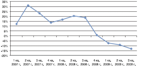 Рисунок 1- Темпы прироста страховых премий 2007 года – 2010 года В 2008 году страховые премии по всем видам страхования составили 952 млрд. руб., а выплаты — 627 млрд. руб., что на 23% и 30% больше, чем годом ранее. В 2009 года темпы роста страховых премий существенно снизились: прирост составил всего 4% по отношению к аналогичному периоду прошлого года, при этом выплаты выросли на 25%. Добровольное имущественное страхование (кроме страхования ответственности) является основным сегментом российского страхового рынка, почувствовавшим на себе воздействие мирового финансового кризиса. Снижение доходов населения, сокращение предприятиями расходов на страхование, снижение ВВП, падение объемов производства и импорта привели к резкому снижению объема страховых премий по страхованию имущества. В 2008 году объем страховых премий по имущественному страхованию (кроме страхования ответственности) составил 317,4 млрд. руб., что на 15,7% больше, чем в 2007 году. Негативные последствия финансового кризиса проявились в данном секторе лишь в 4 квартале, ранее страховые премии показывали уверенный рост. При этом страховые выплаты продолжили свой рост и составили в 2008 году уже 125,6 млрд. руб., что на 37,3% больше аналогичного показателя предыдущего года. Данное расхождение в темпах роста страховых премий и выплат не замедлило сказаться и на коэффициенте выплат по страхованию имущества: с 33% в 2007 году он вырос до 40% в 2008 году. Соответственно изменилась и убыточность по данной группе видов страхования: с 39% в 2007 году она выросла до 50% в 2008 году. Приведенные показатели прироста страховых премий, выплат, а также коэффициента выплат значительно разнятся в сегментах страхования имущества юридических и физических лиц. Совокупная страховая сумма за 2008 год увеличилась с 7,9 трлн. руб. до 9,7 трлн. руб. по договорам, заключенным с физическими лицами, и с 49,6 трлн. руб. до 67,1 трлн. руб. по договорам, заключенным с юридическими лицами. Наблюдаемый с 2005 года резкий рост страховых премий в этом сегменте в основном был вызван ростом страховых премий и выплат по договорам, заключенным с физическими лицами. Если в 2003 году 76% страховых премий в данных видах страхования приходилось на договоры, заключенные с юридическими лицами, то в 2008 году их доля снизилась до 51 %. При этом коэффициент выплат по договорам, заключенным с физическими лицами, по-прежнему превышает вдвое аналогичный показатель по договорам, заключенным с юридическими лицами. Отдельно следует остановиться на поведении рынка страхования за счет средств населения. Из статистики Росстата известно, что в 2008-2010 годах реальные доходы населения непрерывно росли (2,3%, 2,1%, 4,6% соответственно). Тем не менее, в 2009 году произошло заметное снижение объема премий за счет средств граждан как в реальном, так и в номинальном исчислении (на 7 и 15% соответственно), а в 2010 году они незначительно превысили уровень 2008 года. В 2009 и 2010 году мы видели реальный отрицательный рост этого рынка, несмотря на рост реальных доходов населения.