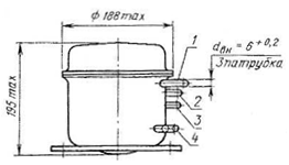 1-нагнетательный патрубок; 2-операционный патрубок, 3-всасывающий патрубок, 4-патрубки устройства для дополнительного охлаждения