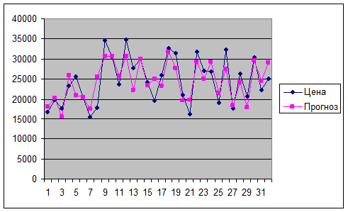 Таблица показывает, что наша модель дает достаточно адекватный прогноз, то есть выбранная модель вполне пригодна для прогнозирования в пределах исследуемой предметной области.