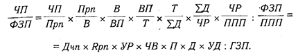 ЧР - среднесписочная численность рабочих; ППП - среднесписочная численность промышленно-производственного персонала; ЧВ - среднечасовая выработка продукции; П — средняя продолжительность рабочего дня; УД - удельный вес рабочих в общей численности персонала; ГЗП - среднегодовая зарплата одного работника.