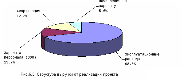 На рисунке 5.1 приведена предварительная схема построения организационной структуры, основанная на реализации необходимых функций. Приведем краткие комментарии к схеме. Совет директоров формируется на собрании учредителей акционерного общества и осуществляет общий контроль над деятельностью управляющей компании. Управляющая компания осуществляет оперативное руководство гостиничным центром (на роль управляющей компании может претендовать фирма уже имеющая опыт работы в данном бизнесе). При развитии проекта конкретная схема построения бизнеса будет уточняться совместно с инвестором. 6.ФИНАНСОВЫЙ ПЛАН. ГРАФИК ПОГАШЕНИЯ КРЕДИТА Результаты расчетов приводятся в табличной форме и вынесены в Приложение 2. Расчеты производились на период 10 лет в ежегодном разрезе. Приведем краткие комментарии к расчету финансовых показателей. 6.1.Необходимые капиталовложения, их динамика и структураОбщие затраты на реализацию проекта составляют 18 млн.$US, вкладываются в течение первых двух лет и формируются за счет акционерного капитала. Р Заемные средства для реализации проекта в данном варианте не привлекаются (альтернативный вариант – привлечение кредитных ресурсов в размере 8 млн.$US по ставке 12% годовых). 6.2.Анализ эффективности вложений1. Издержки производства (рис.6.2.): эксплуатационные расходы ($18’000’000 в год); амортизация здания начисляется исходя из начального срока эксплуатации (50 лет) – 2% годовых; заработная плата персонала ($360’000 в 2001 год (1-й год эксплуатации) – 300 человек при среднемесячной заработной плате $100), в дальнейшем планируется увеличение среднемесячной заработной платы на 10% ежегодно; н 2. Структура поступлений (рис.6.3.): плата за предоставляемые номера ($4’380’000 в год); аренда офисов ($1’500’000 в год); аренда складов ($400’000 в год); д 3. Динамика финансовых потоков показывает, что в любой момент времени Компания может отвечать по своим обязательствам. 4. Результаты по проекту (коэффициент дисконтирования в расчетах принят на уровне 8% в год): результаты от реализации проекта (рис.6.4.);