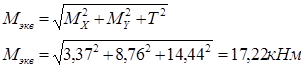 Силы в опасном сечении Проверим выполнение условия статичной прочности. Формула эквивалентного момента по III гипотезе прочности.