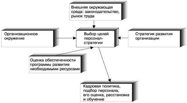 Модель стратегического управления персоналом предприятия исходит из стратегических целей организации, функционирующей в условиях переходной экономики, и может быть представлена в следующем виде. Основными составляющими оценки обеспеченности программы развития необходимыми ресурсами (в частности, трудовыми и человеческими ресурсами) являются: