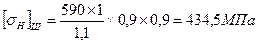 3 Расчет зубчатых передач 3.1 Расчет допускаемых контактных напряжений зубьев шестерни [σн ]ш и колеса [σн ]к рядовой ступени, МПа Допускаемые контактные напряжения для находятся по формуле: