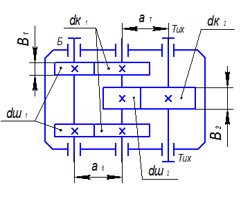 2.4 Расчет массы привода а) Расчет межцентровых расстояний для быстроходной a б и тихоходной a т ступеней