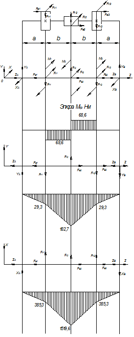 Строим эпюру изгибающих моментов в плоскости YOZ