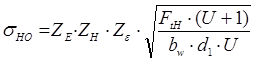 Z2=78-26=52 По округлённым значениям Z1 и Z2 уточняем передаточное число Uп= Z2 / Z1 [5,c.37] Uп=52/26=2 Проверяем отклонение передаточного числа от заданного значения (Uз – Uп)/ Uз · 100% (2-2)/2·100%=0% Действительное значение угла наклона линии зуба β cosβ= 0,5 · (Z1 + Z2) · mn/ aw cosβ= 0,975 β=12,8 ̊ 2.2.6 Определяем окружной модуль mt = mn/ cosβ [3,c.142] mt = 2/0,975=2,05 мм 2.2.7 Уточняем диаметры делительных окружностей и межосевое расстояние d1= mt · Z1 d1= 2,05·26 = 53 мм d2= mt · Z2 d2 = 2,05·52 =107мм aw =(d1+d2)/ 2 aw= (53+107)/2 = 80 мм 2.3 Проверочные расчёты передачи 2.3.1 Проверочный расчёт передачи на контактную усталость активных поверхностей зубьев выполняем по условию контактной прочности