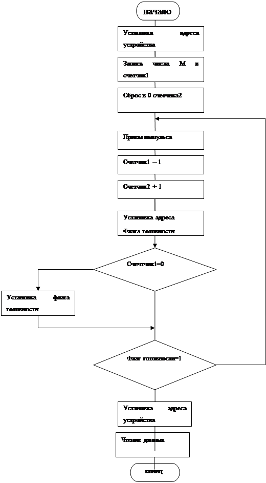 | Федеральное Агентство образования Российской Федерации Пензенский государственный университет Кафедра "Информационная безопасность систем и технологий" ПОЯСНИТЕЛЬНАЯ ЗАПИСКА к курсовой работе по теме «Разработка устройства сопряжения для персонального компьютера типа IBM PC» ПГУ 3.090105.001 ПЗ Реферат УСТРОЙСТВО СОПРЯЖЕНИЯ, СИСТЕМНАЯ ШИНА ISA, ИЗМЕРИТЕЛЬ ЧАСТОТЫ СЛЕДОВАНИЯ ИМПУЛЬСОВ, СЕЛЕКТОР АДРЕСА, БЛОК ВЫРАБОТКИ ВНУТРЕННИХ СТРОБОВ Цель работы - разработка устройства сопряжения для персонального компьютера типа IBM PC по интерфейсу ISA. Устройство сопряжения предназначено для приёма информации от компьютера, обработки этой информации по заданному алгоритму, выдачи результата обработки информации в компьютер. В ходе выполнения работы было спроектировано устройство сопряжения, подключаемое к системной шине ISA. Устройство сопряжения выполняет функцию измерения частоты следования импульсов. Моделирование данной функции было проведено в программе Electronics Workbench. В результате работы были спроектированы функциональная схема, принципиальная схема, а так же операционная часть. Содержание Реферат Введение 1. Описание алгоритма функционирования УС 2. Описание функциональной схемы УС 2.1 Описание работы функциональной схемы интерфейсной части УС 2.2 Описание работы функциональной схемы операционной части УС 3. Описание принципиальной схемы 4. Моделирование схемы ОЧ УС в EWB 5. Построение диаграммы работы устройства сопряжения Заключение Список использованных источников Приложение А. Обязательное. Алгоритм функционирования УС Приложение Б. Обязательное. ПГУ 3.090105.002 Э2 Устройство сопряжения. Схема функциональная интерфейсной части Приложение В. Обязательное. ПГУ 3.090105.003 Э2 Устройство сопряжения. Схема функциональная операционной части Приложение Г. Обязательное. ПГУ 3.090105.004 Э3 Устройство сопряжения. Схема электрическая принципиальная Приложение Д. Обязательное. ПГУ 3.090105.004 ПЭ3 Устройство сопряжения. Перечень элементов Введение