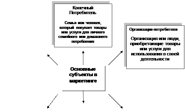 Субъекты маркетинга включают производителей и организации обслуживания, оптовые и розничные торговые организации, специалистов по маркетингу и различных потребителей. Как показано на рис. 2, у каждого из них своя роль. Важно отметить, что хотя ответственность за выполнение маркетинговых функций может делегироваться и распределяться различными способами, совсем ими в большинстве случаев пренебречь нельзя, они должны кем-то выполняться.