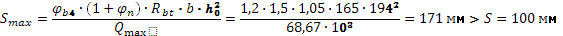 Принимаем Cmax =1723,3 мм. [п.3.32, Пособие по проектированию ЖБК без предварительного напряжения]. Тогда: