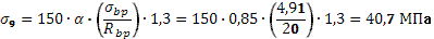 Напряжение σ’bp на уровне крайнего сжатого волокна (т.е. при у = h – y0 = 220 – 107,1 = 112,9 мм).