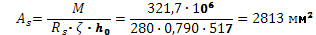 Площадь поперечной рабочей арматуры определяю по формуле: