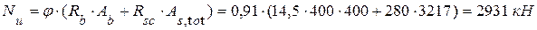 F=1401 кН < 1∙900∙5∙0,85 = 3825 кН Следовательно, условие [формула (107), СНиП 2.03.01-84] соблюдается.