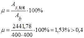 Так же удовлетворяются требования по минимальному армированию, поскольку