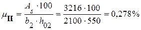 Нестандартную сварную сетку конструирую с одинаковой в обоих направлениях рабочей арматурой 16 Ø16 As =3217 мм2 , соответственно фактические проценты армирования расчетных сечений: